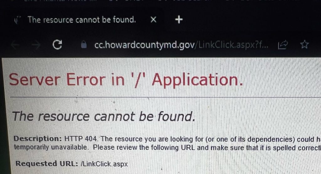 Source: Error Message from Howard County government website