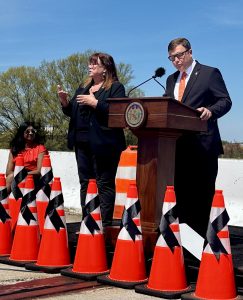 Among the measures to receive Moore’s signature was the Maryland Road Worker Protection Act, which Miller championed throughout the legislative session and touted Tuesday, during an event overlooking the site of the I-695 crash to mark National Work Zone Awareness Week.