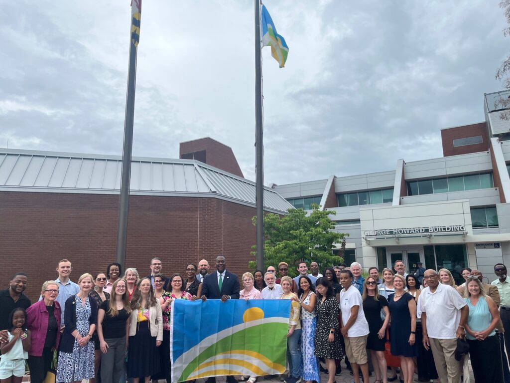 “Our new county flag reflects Howard County‘s natural and human resources and historically proud and future-oriented central Maryland community,” explained Ball. “It represents an evolving agricultural past blended with an optimistic culture, environment and economic future, which is cosmopolitan, vibrant and thriving.