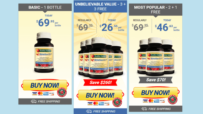 So the best place to buy StrictionBP is directly from the manufacturer’s website. StrictionBP’s website has a great offer going on right now, and you get to access it from their official website. There is a lot of scams going around where you get scammed into buying a different product and get ripped off. But this doesn’t have to be with you, and you certainly deserve the peace of mind from a quality brand. That’s why the manufacturer gives you access to their online store from where you can place a secure order.