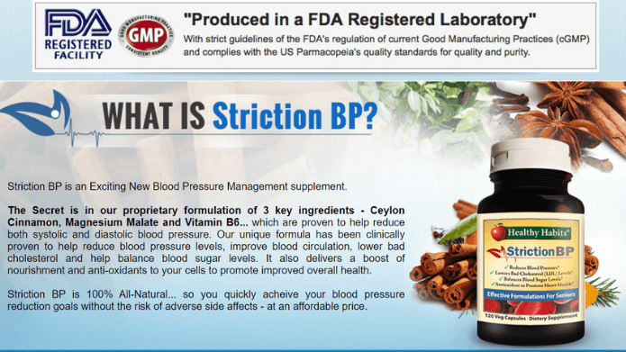 StrictionBP is a dietary supplement. Unlike drugs or prescription meds, it does not require to be approved by the FDA.